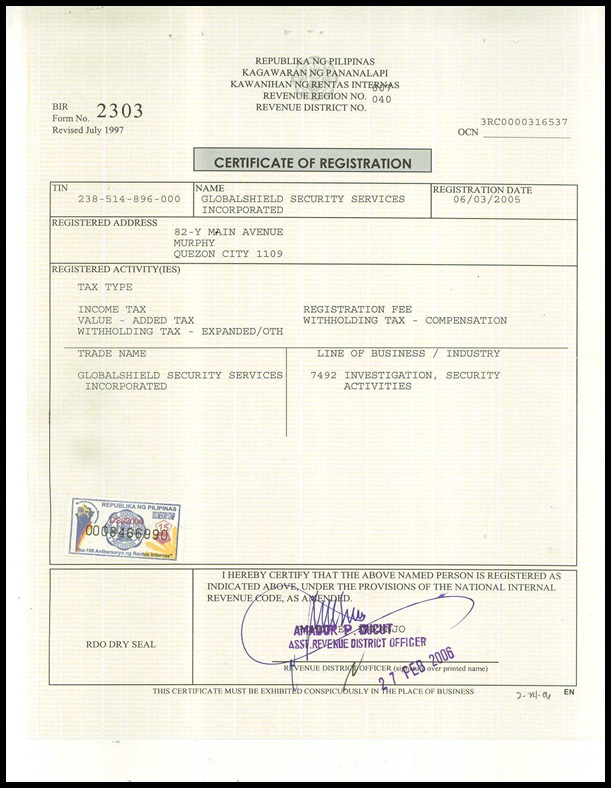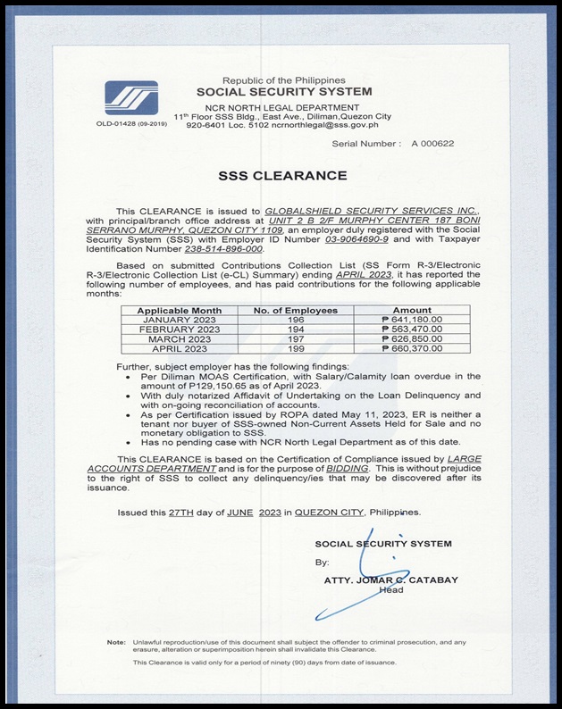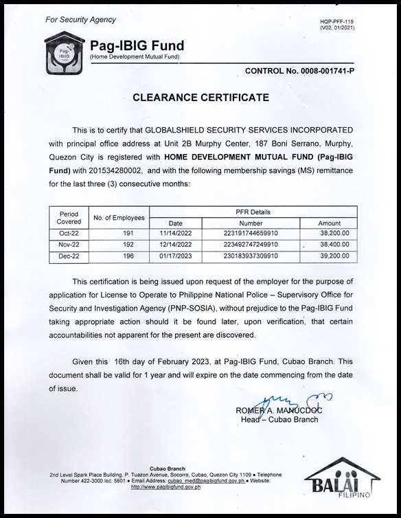- Admin. and Finance Supervisor, Globalshield Security Services, Inc.