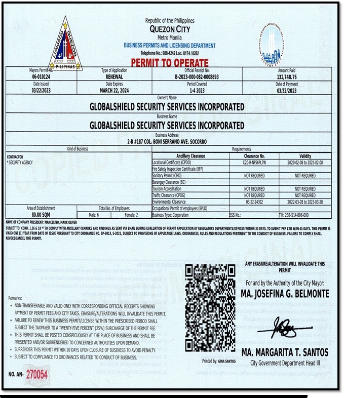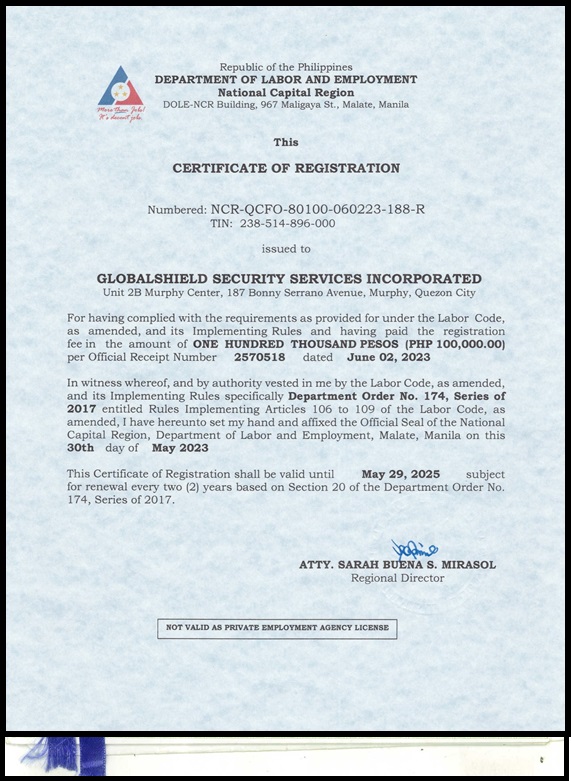 - SOSIA Licensee, Globalshield Security Services, Inc.