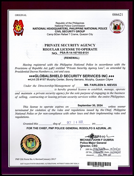 - Security Officer’s License Course-Camp Crame, Quezon City